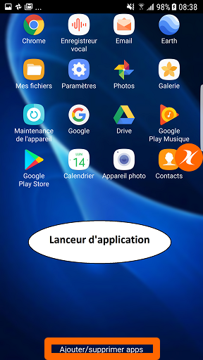 La configuration des applications qui sont visibles dans le lanceur d’application (et la définition de la pop-up applications) peuvent être réglé en appuyant sur le bouton “Ajouter/supprimer apps”.