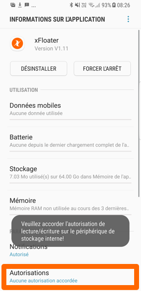Si le bouton xFloater disparaît de temps en temps, il peut être parce que l’ajustement “énergie” du système. Dans certains téléphones mobiles, le système désactive les services d’accessibilité, si “l’énergie” est ajustée de sorte que la batterie dure le plus longtemps possible. xFloater/xFloaterFree ne raccourcit pas considérablement la durée de vie de la batterie.