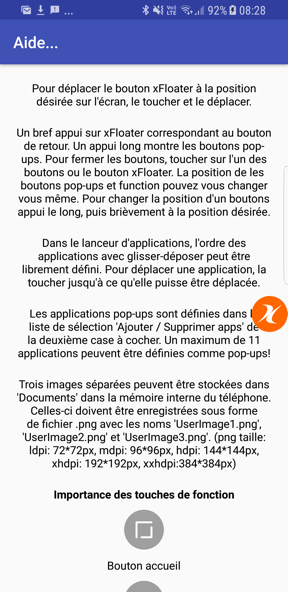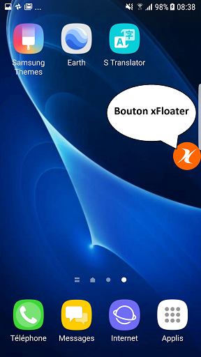 La version gratuite de xFloater (xFloaterFree) a des fonctionnalités limitées. L’icône du bouton xFloater ne peut pas être modifié. Le lanceur d’application et les applications pop-up peut être configurés, mais pas démarré.